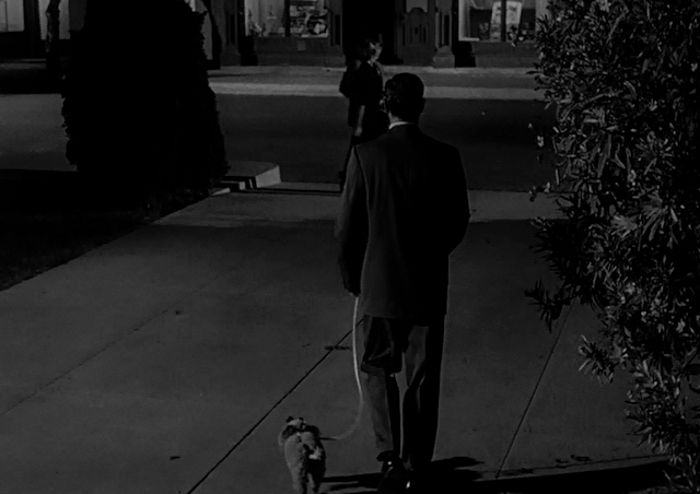 Gunn meets with Lt. Jacoby outside the library who teases him about Sandra Leeds wanting Poochie (the pet poodle), to be fed a raw egg each morning. Gunn walks away with Poochie on a leach walking beside him.