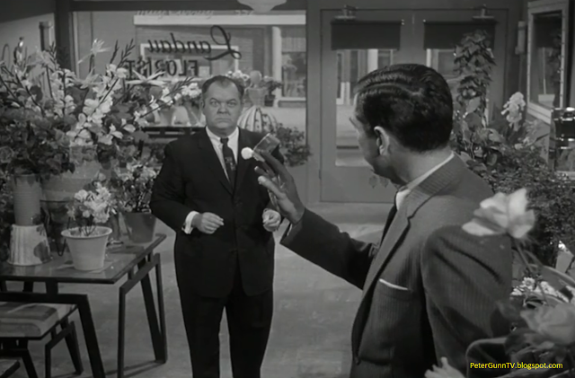 Detective Harmon shortly after Peter Gunn was beaten badly by two thugs…
